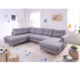 Canape Grand Angle Gauche Scandinave Convertible Tissu Gris Clair